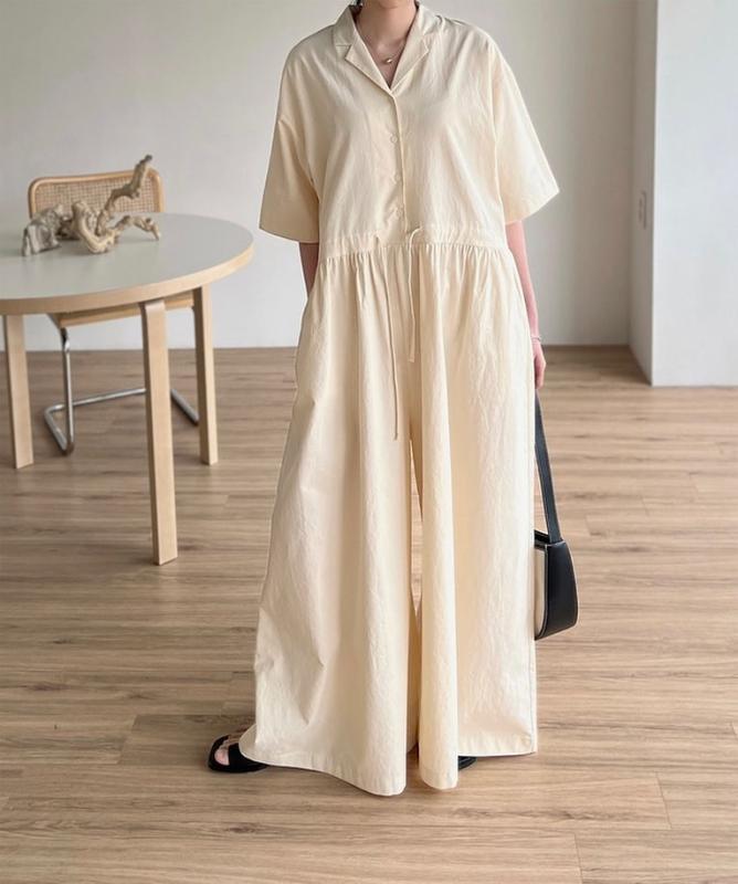 편안한 활동성과 스타일리쉬함을 고루 갖춘 코튼 점프수트.