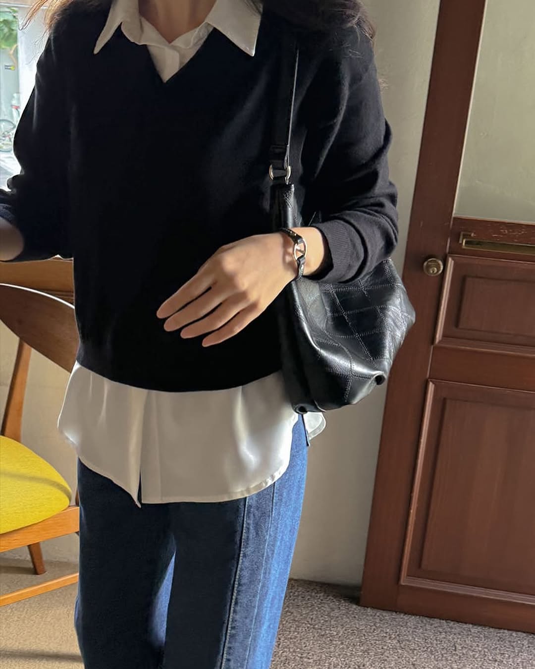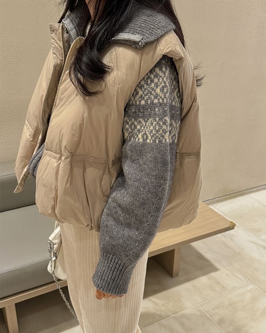 코디 1) 온리스타일 + 마지아룩 콜라보 🖤 아이더 숏패딩에 따뜻함과 스타일을 더해줄 온리스타일의 아가일 브러쉬 니트 베스트와 마지아룩의 밍크 기모 골지 와이드 팬츠 (그레이) 조합은 어때? 😊 베스트 레이어링으로 보온성은 물론, 센스까지 챙길 수 있고, 와이드 팬츠는 활동성도 좋고 무엇보다 핏이 대박이야! 👍 베이지나 아이보리 톤의 이너와 함께 매치하면 부드러운 겨울 감성 제대로 느껴볼 수 있을 거야! 🍂