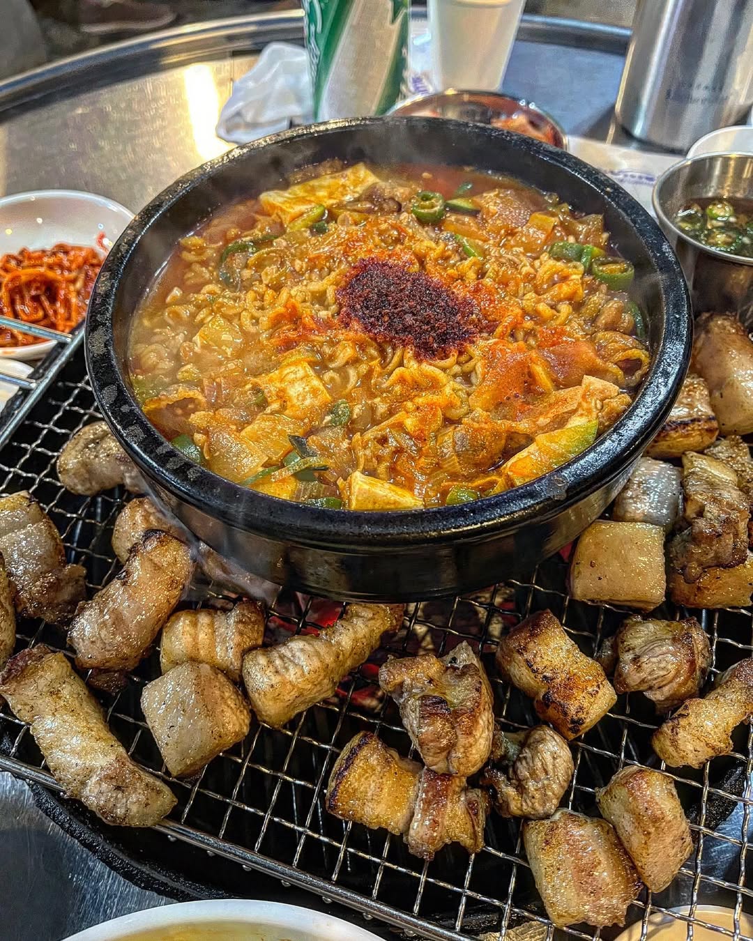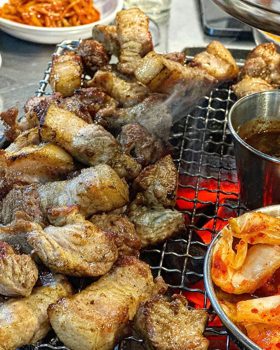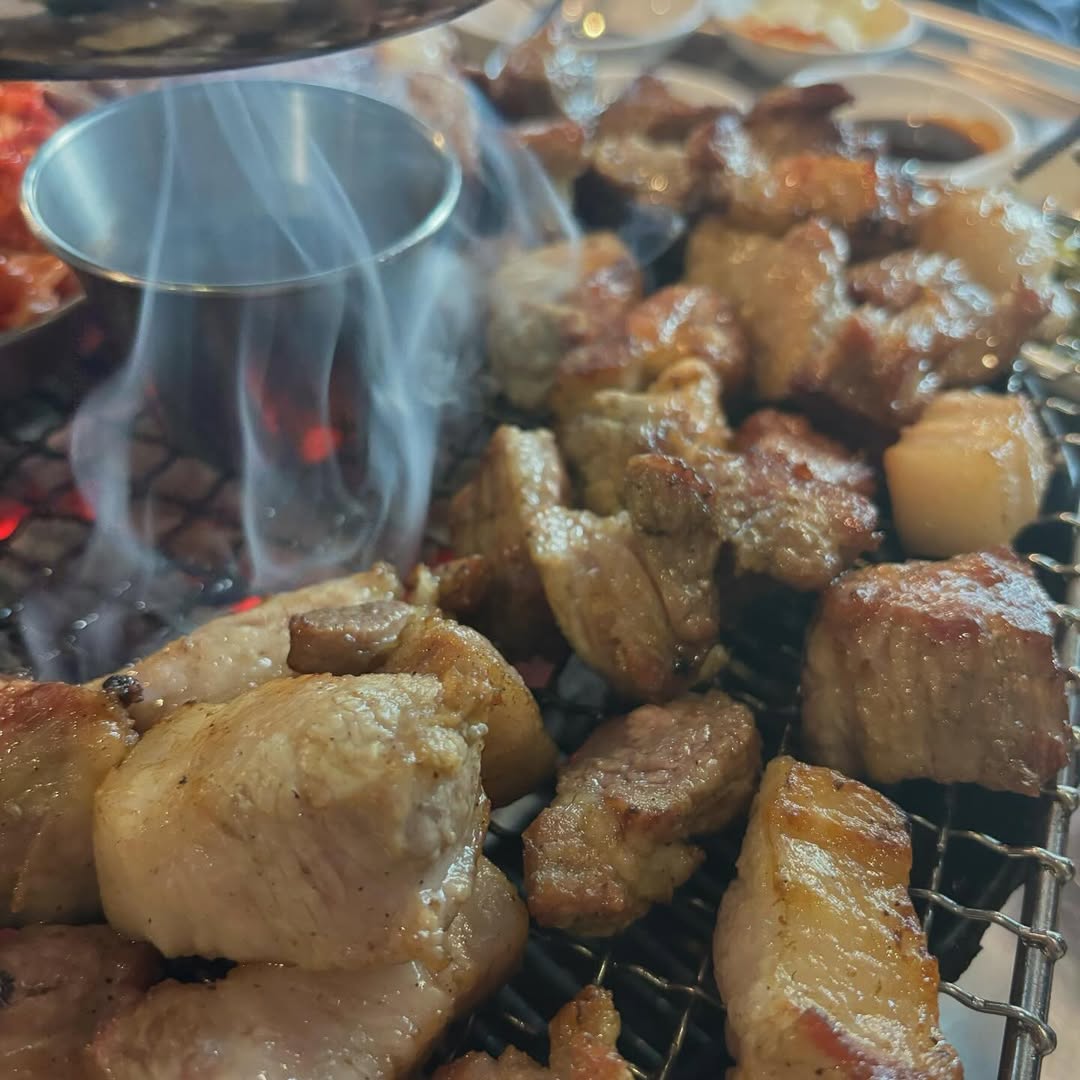 드디어 등장한 고기! 숯불에 초벌되어 나와 거의 다 익혀진 상태로 나오기 때문에 바로 먹을 수 있다는 점이 정말 편했어요. 🔥