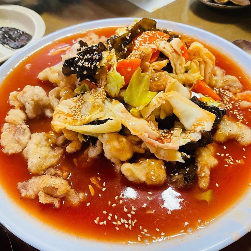 탕수육는 옛날st로 바삭녹진해여! 튀김옷은 두껍고 케찹베이스라 호불호가 갈릴 거 같은데 저는 완전 호 입니다! 튀김옷이 두꺼워서 더 고숩고 소스에 절여진 맛이 더 좋게 느껴지더라구여..🤍