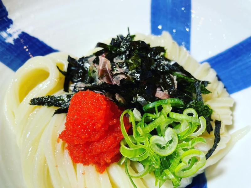 Soy sauce cold udon + sea weed + cod roe