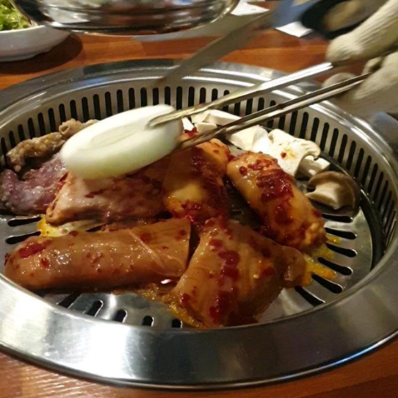 우선 사장님 부부께서 이 분야에서 굉장히 오랫동안 종사하신 것 같다. 구워주실 때도 설명을 하나하나 친절히 다 해주셨다. 예를 들면 천엽이 약간 양념갈비 맛이 난다고 하셨는데 정말 그 맛이 낫다. 사실 천엽을 처음 먹어보는 것은 아니었고 대창이나 곱창에 비하면 빨리 구워지기 때문에 약간 에피타이저로 생각했던 면이 없지 않아 있는데 이번엔 먹고 천엽을 다시 보게 되었달까...양은 말할 것도 없었다. 혼자 거의 다 먹었다. 호호. 관자 같은 식감에 짭짤매콤한 맛이 입안을 감싼다.